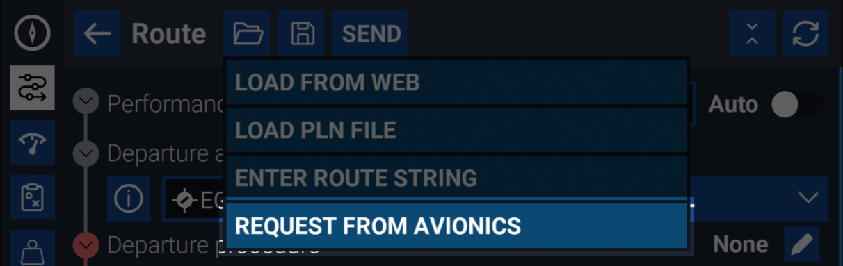 Loading a route from the EFB into the aircraft