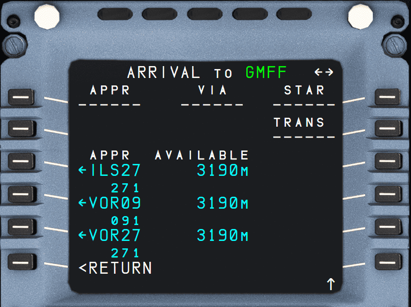 - Used for selecting the arrival runway and procedures (STAR, APPR, TRANS, etc.)