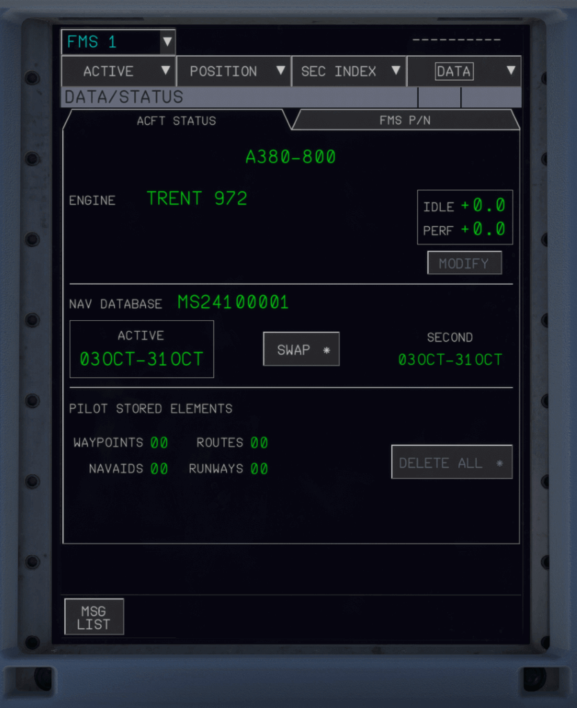 The MFD is interactive: The flight crew can navigate through the pages, and can consult, enter or modify the data via the KCCU.